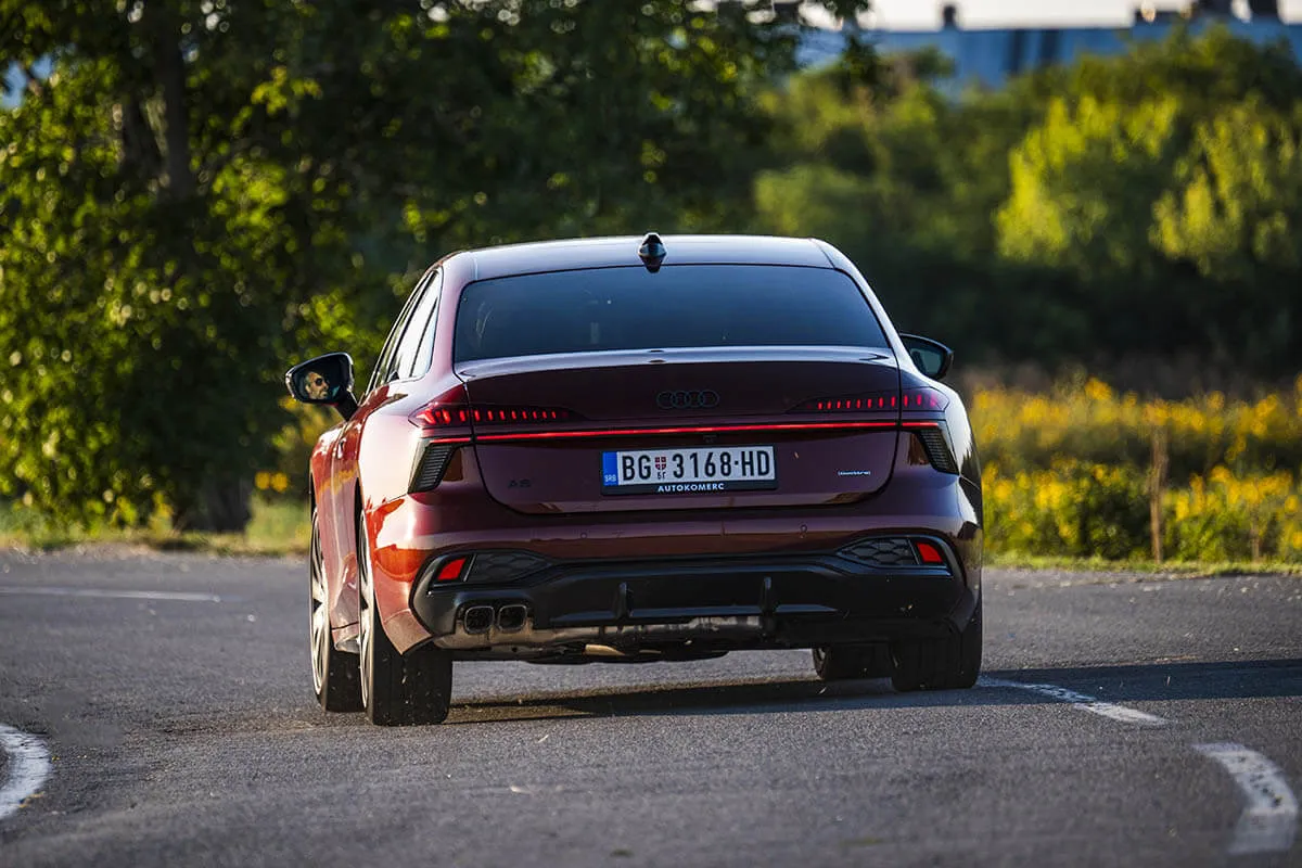 Ali, da krenemo od izgleda. U Ingolštatu su ostali verni filozofiji umereno progresivnog dizajna. Novitet jeste dobio moderan izgled, ali je ostao veran korporativnom stilu. To podrazumeva široku masku hladnjaka sa agresivnim linijama, uz neizostavni LED svetlosni potpis koji kod testiranog primerka daju vrhunski Matrix LED farovi. Bočna proširenja i nešto kraći zadnji deo bude asocijaciju na „e-tron GT”, električnu limuzinu najvišeg ranga u Audijevom portfoliju. Zadnji deo ističe se takođe svetlosnim potpisom, ali i vidljivim završetkom izduvnog sistema, oličenom u dve četvrtaste cevke. Bravo za Audi po tom pitanju, jer je pomenuto rešenje iščezlo na velikom broju novih modela. Takva sudbina nije mimoišla ni prethodnu „šesticu”, pa zapravo treba pozdraviti odluku Audija da ovaj efektan detalj vrati novom „A6” modelu. Sve u svemu, automobil izgleda robusno, ali dinamično, te zadržava jednu dozu ozbiljnosti i konzervatizma.