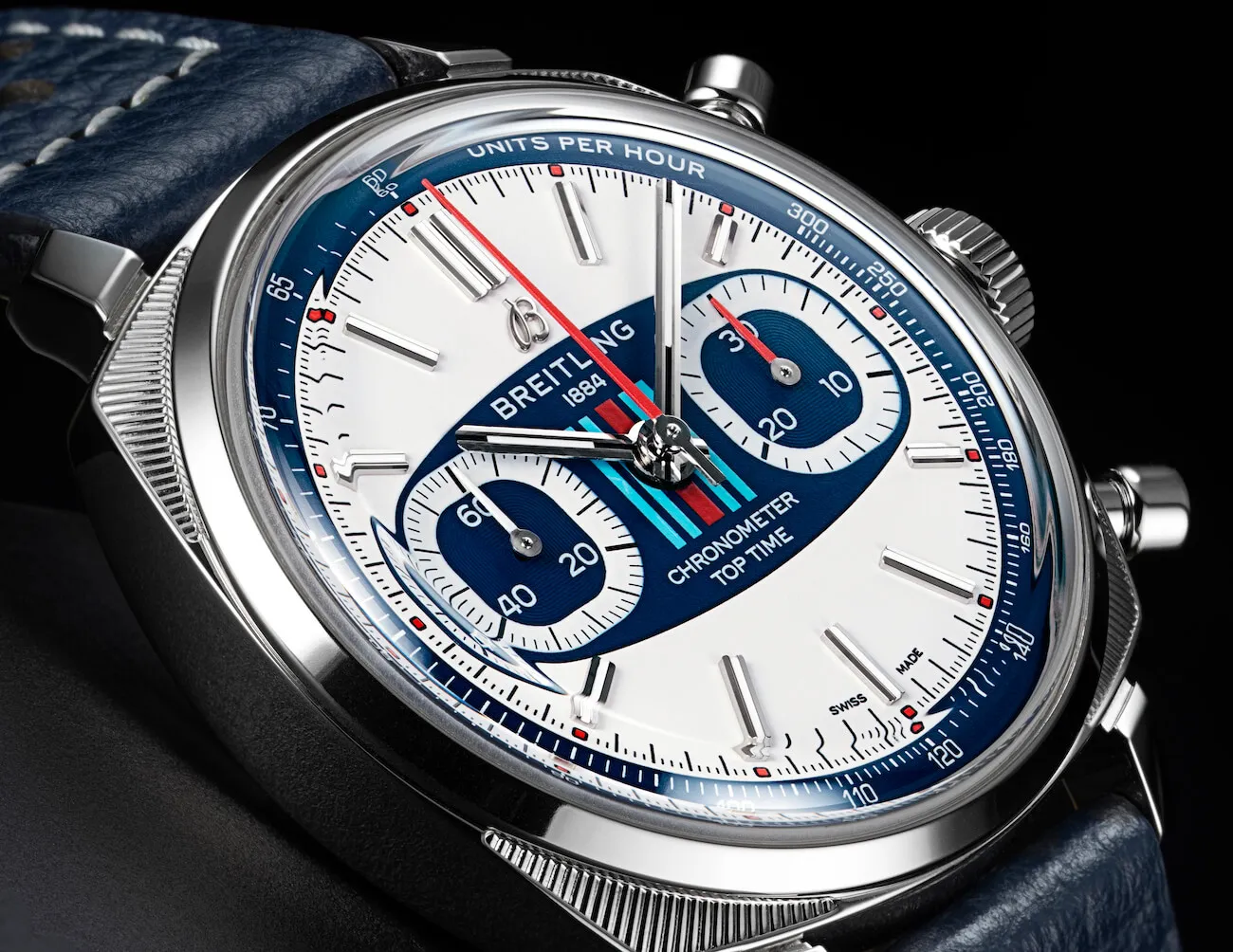 Najnoviji hronograf švajcarske kompanije nastupa u autentičnim Martini tonovima koji savršeno prate nostalgičan dizajn ekskluzivnog časovnika. Kao bonus, novi Breitling koristi prvoklasni COSC mehanizam!