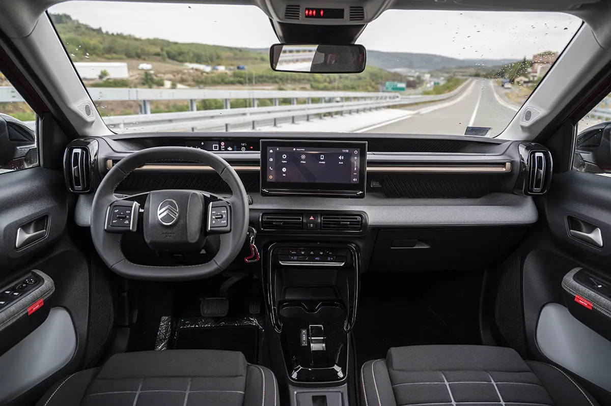 Materijali su ekonomični, a ono što mu zaista daje zanimljivu notu jeste upotreba tekstila. Naime, Citroën koristi tkaninu na centralnom delu komandne table, što razbija monotoniju plastike. U najvišem paketu opreme tu su i bežični punjač za telefon, veliki pretinci u vratima i praktična središnja konzola sa držačima za piće.