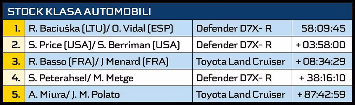 Set Kintero, Saud Varjava i ostali nisu bili na visini zadatka, pa je čast spasao takođe bivši motociklista, Tobi Prajs. Australijanac je u cilju najbolji vozač „tojote hajlaks”, ali tek kao osmi u konačnom plasmanu.