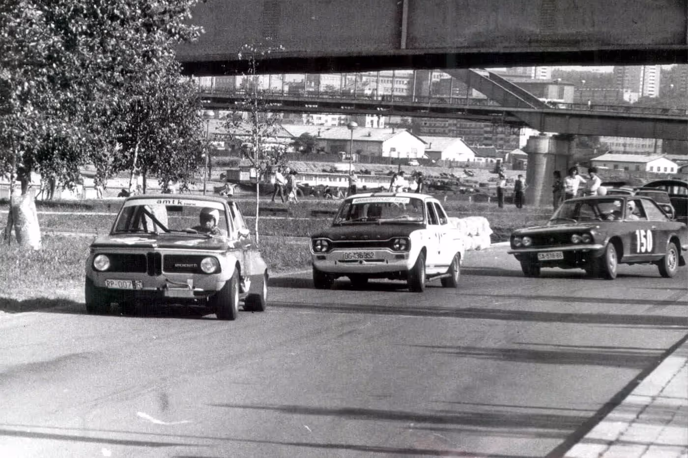 „Ford eskort” (u sredini) u duelu sa „BMW alpinom” na trci na Ušću 1970. godine