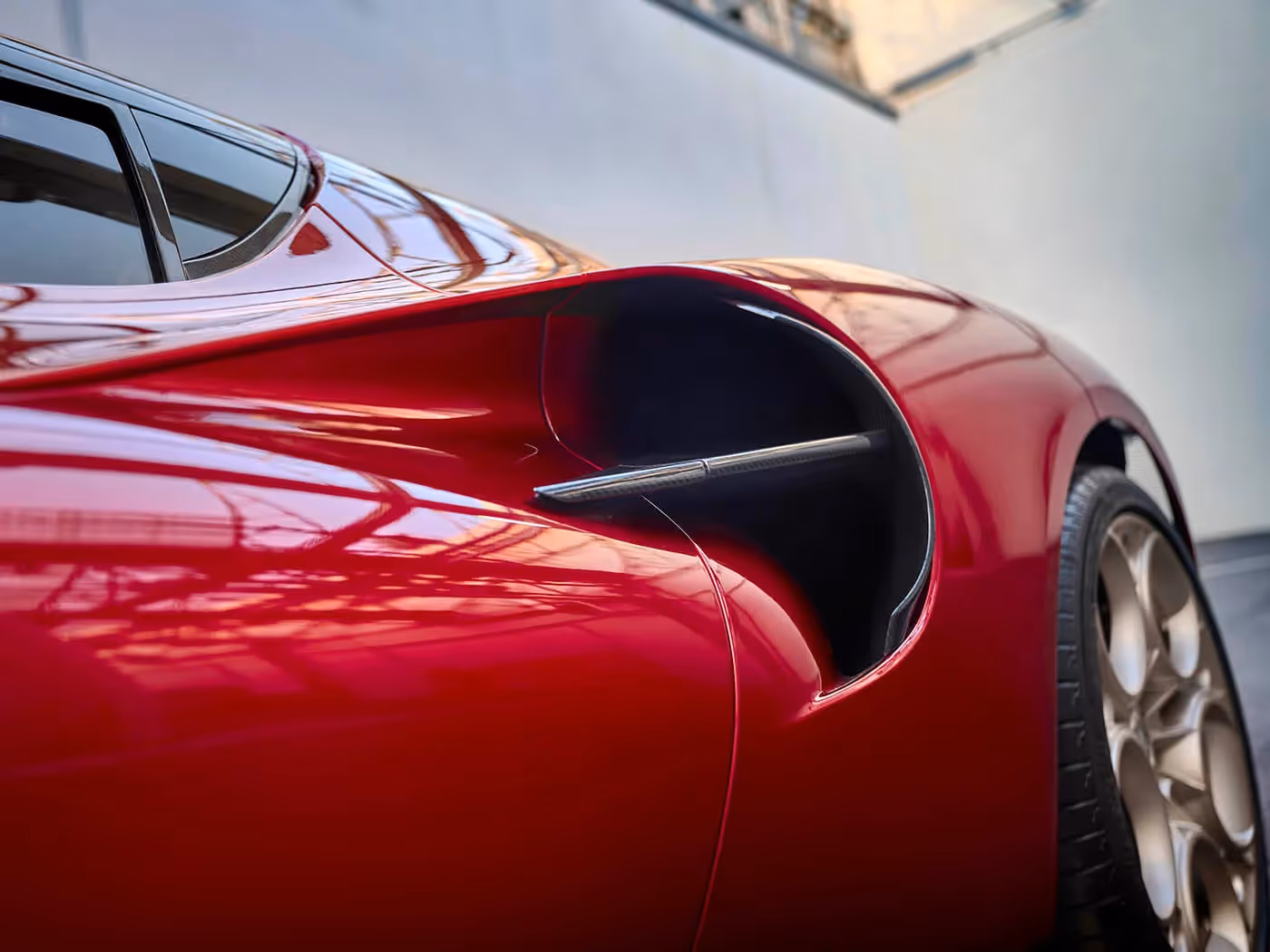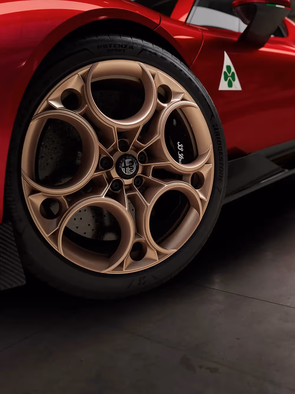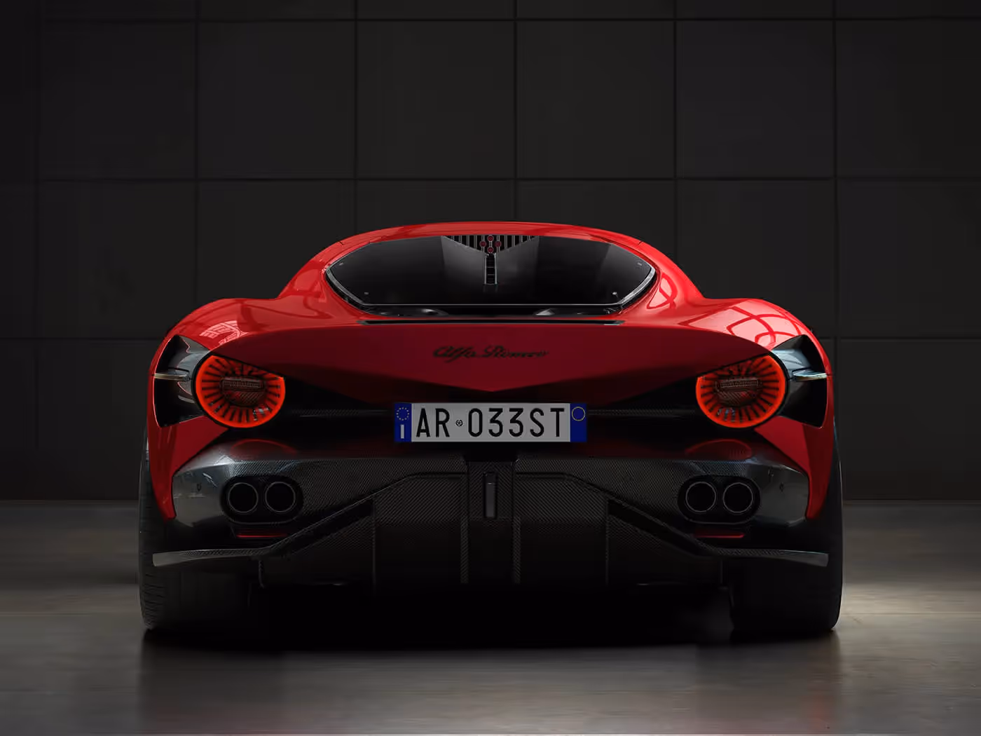 Legendarno sportsko nasleđe brenda koji je prvi prigrabio titulu u Šampionatu Formule 1 – 1934. godine, vanvremenski dizajn i neprevaziđeni italijanski šarm, objedinjeni su pod „parolom” 33 Stradale. Novitet nosi ruho lakog sportskog dvoseda tako da koncepcijski i vizuelno, baš kao i svojim imenom, odaje poštu slavnom rođaku i imenjaku, izvornom modelu „33 stradale”. Oba imaju slično oblikovan, masivan i spušten prednji kraj, a tu su i specifična vrata koja se otvaraju poput krila. Kod naslednika se ističe rešetka hladnjaka od ugljeničnih vlakana „izvezenih” u obliku malenih, gusto načičkanih srca. Krupne „oči”, odnosno prednja svetla u obliku elipse, još jedna su u nizu dodirnih tačaka stare i nove interpretacije, baš kao i kratak „rep”.