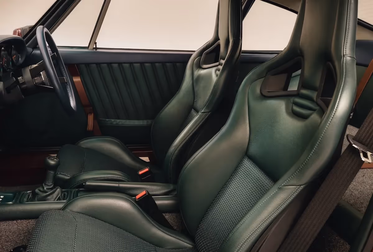 Unutrašnjost je obložena u dvobojnu Charcoal Grey/Ocean Green kožu, naglašavajući vintidž stil kojim ovaj „elfer“ naprosto zrači! Centralni deo sportskih sedišta je prekriven tkaninom, čime je Tuthill dodatno istakao retro duh.