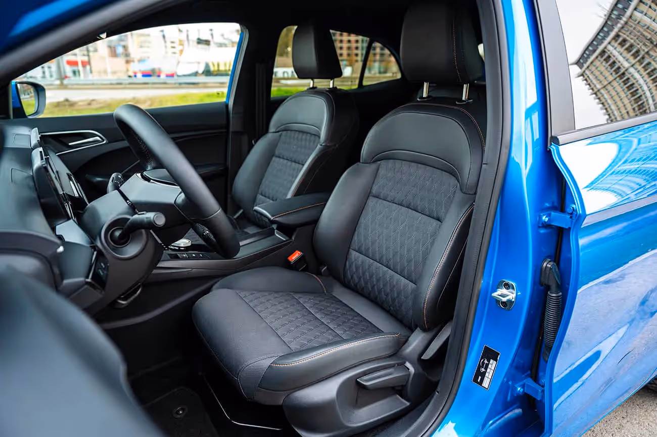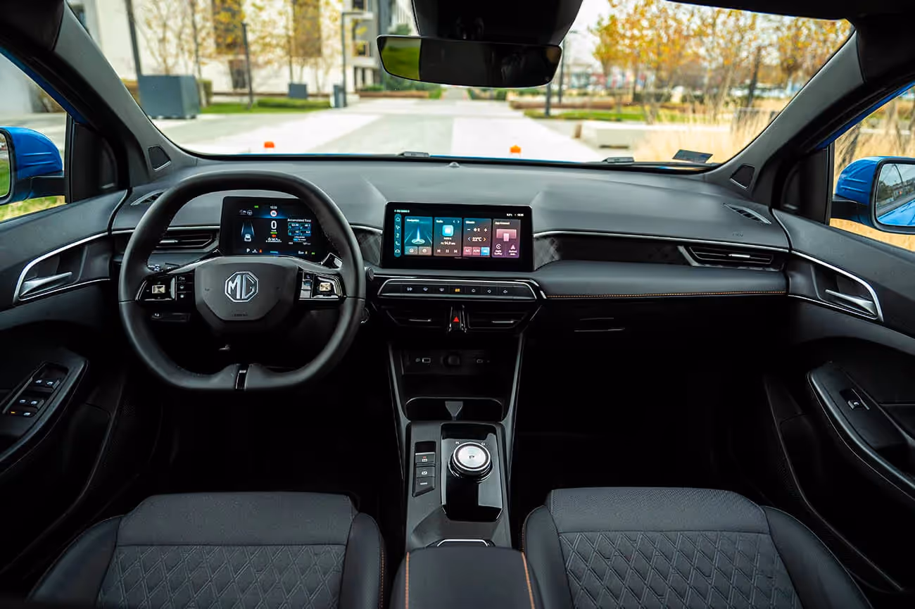 Unutrašnjost je sasvim pristojno „skockana” i pomalo asocira na veći i skuplji MG4. Arhitektura dizajna je savremena i svi elementi se skladno nadovezuju jedan na drugi. Digitalna instrument-tabla dolazi u formi ekrana od 7 inča, dakle nije prevelika, dok središnje mesto zauzima displej od 10,25 inča koji oblikom podseća na one kod Mazdinih modela i ujedno predstavlja komandni centar za multimediju i navigaciju.