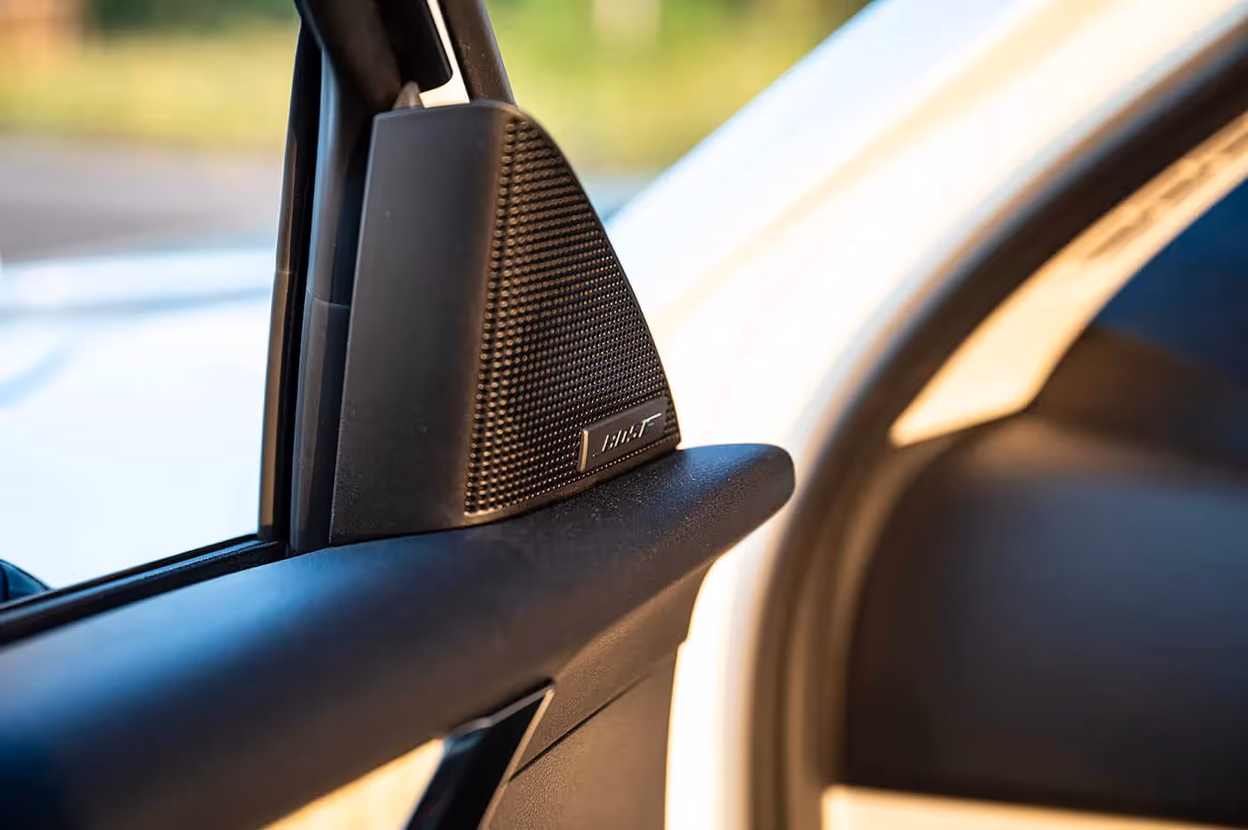 Sedišta obložena svetlom kožom odlično se nadovezuju na belu boju karoserije. Podešavaju se električnim komandama i dolaze sa funkcijama grejanja i ventilacije