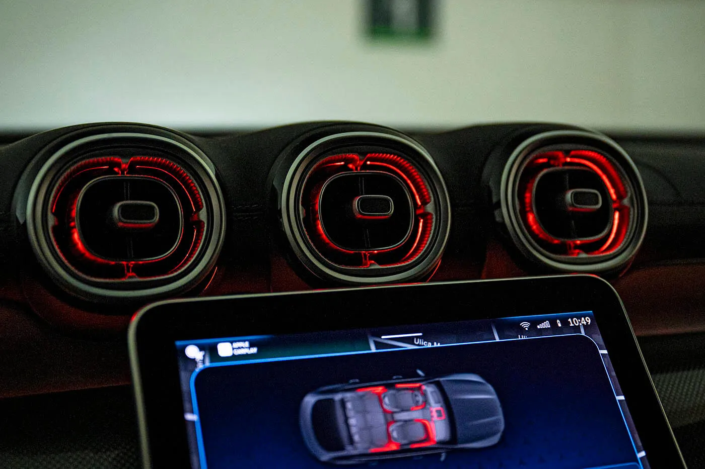 Digitalna instrument-tabla od 12,3 inča omogućuje nekoliko stilova i čitav spektar različitih informacija koje su na maštovit način grafički animirane. Jedno od specifičnih rešenja koje pojačava utisak u kokpitu su osvetljeni ventilacioni otvori