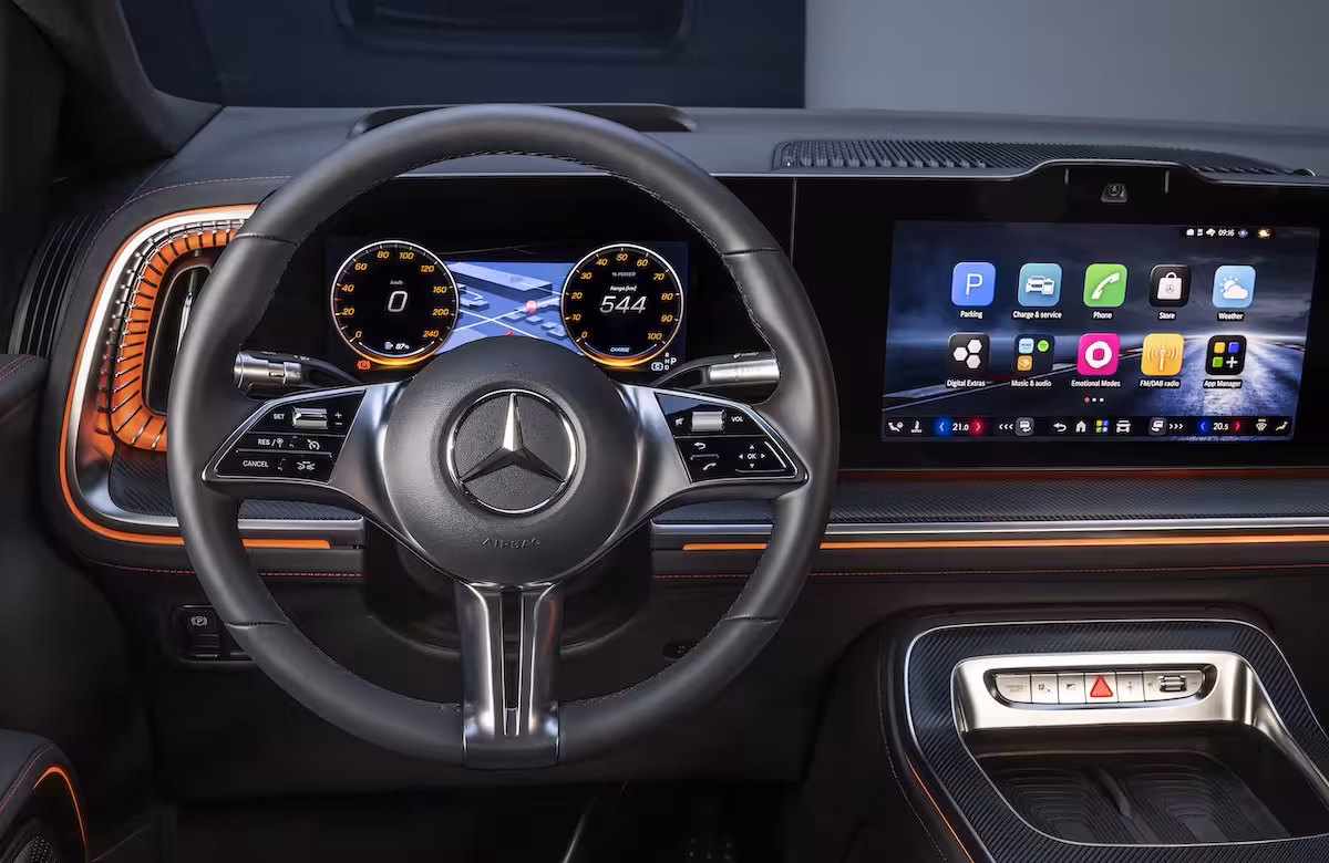 Enterijer je posebna priča, budući da unutrašnjost donosi potpuno novu generaciju Mercedesove digitalne platforme MB.OS. Središnji deo kabine čini najnovija generacija MBUX platforme, dok opcioni Superscreen kombinuje tri ekrana pod jednom staklenom površinom. U izuzetnom luksuzu će uživati osam putnika, koji će na raspolaganju imati najaktuelnije gedžete!