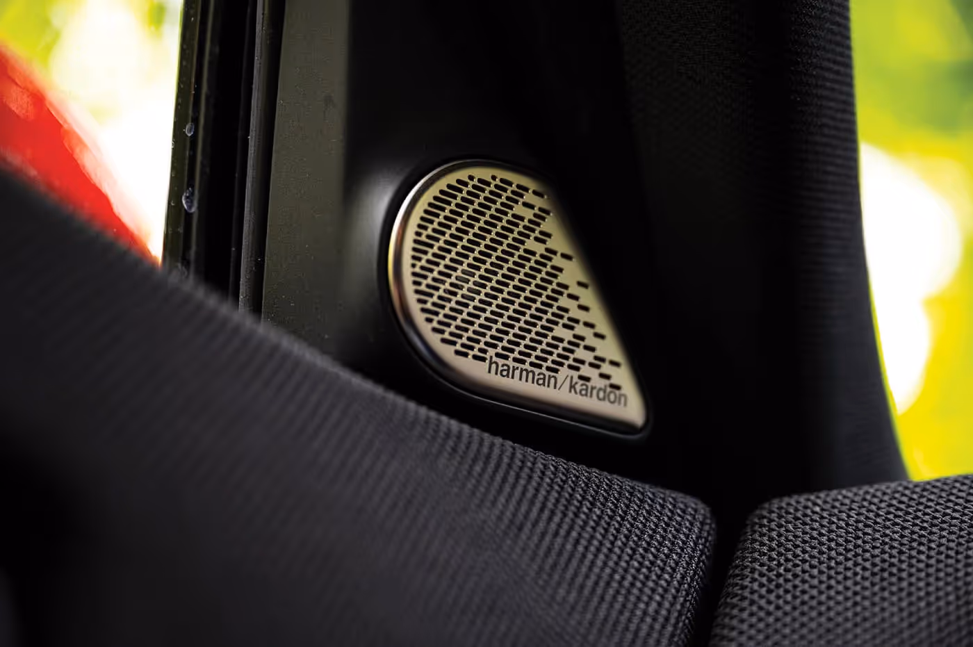 Isto se ne može reći za jedan od najinteresantnijih detalja, a to je prednji panel presvučen tkaninom i oplemenjen atraktivnim bordurama. Još kada se na sve to doda ambijentalno osvetljenje, efekat je zaista nezaboravan. Nekima će izbori pojedinih boja delovati psihodelično, ali jedno je sigurno – osećaj sedenja je jedinstven.