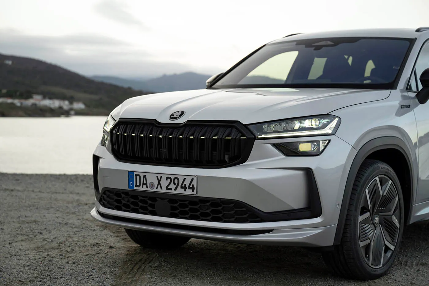 Dakle, novi model nastupa vrlo upečatljivo jer, ne samo što je veći nego pre (+6 cm u dužini), već je dizajnerski rešen tako da vam daje do znanja da se totalno uozbiljio u odnosu na svog - sada to vidimo i možemo da kažemo - nežnijeg prethodnika. Novi Kodiaq zaista deluje kao kakav grubijan naspram prve generacije. Tome je prvenstveno doprineo drugačiji dizajn prednjeg dela - više postavljena i drugačije oblikovana hauba, novi LED farovi, drugačija i veća šestougaona maska hladnjaka (koja se po izboru može osvetliti s 14 svetlosnih elemenata).
