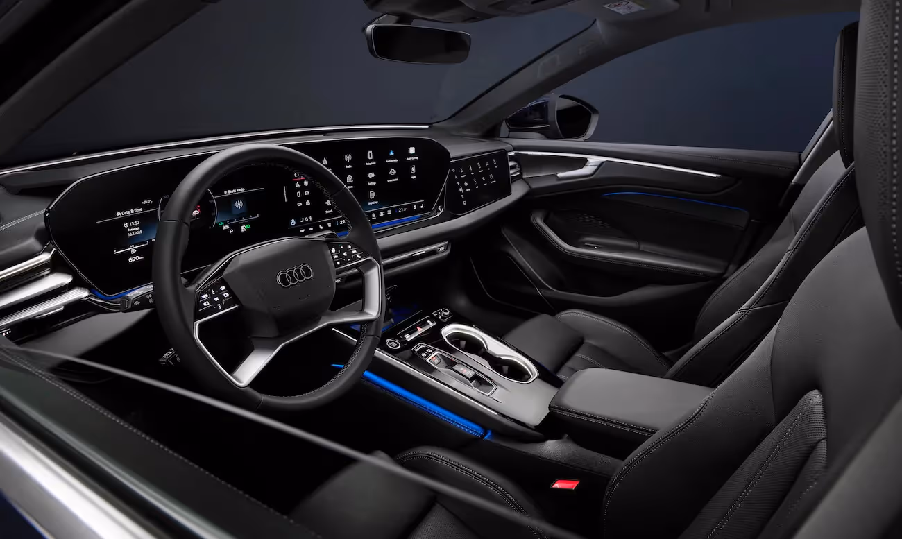 Audi u unutrašnjosti nudi harmoniju napredne tehnologije i prvoklasnih materijala. Zahvaljujući dužini od 4.99 metara komfor je takođe na visokom nivou, dok je kapacitet prtljažnog prostora 492 litra. Nemački brend navodi da je novitet za 60 mm duži od prethodnika. Međuosovinsko rastojanje iznosi 2.927 mm.