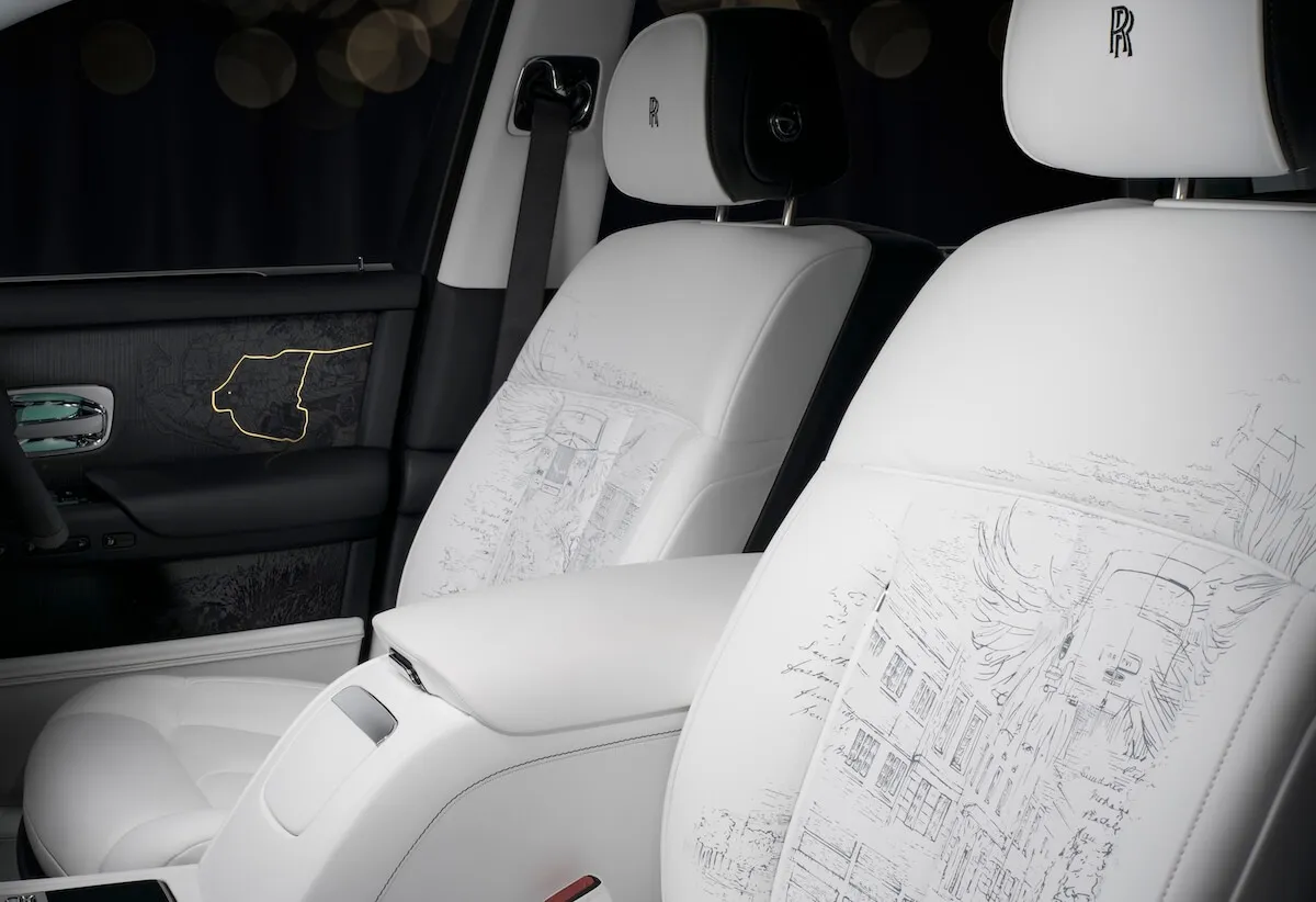 Najluksuzniji materijali u raskošnoj kabini se podrazumevaju, pa je Phantom Centenary Private Collection spojio najfiniju kožu, drvo i detalje od zlata. Sedišta su ukrašena specijalnim motivima iz bogate fabričke istorije, što je bio još jedan način da se novi Phantom distancira od „običnih“ modela. Primera radi, zadnja klupa u jedinstvenoj tkanini ističe print visoke rezolucije, dok laserski gravirana prednja sedišta prikazuju ručno skicirane scene inspirisane baštinom linije Phantom.