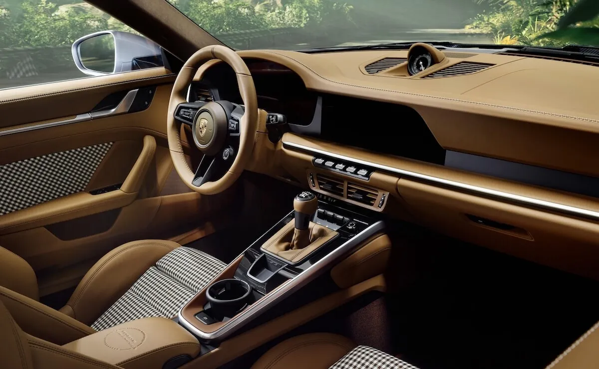 Na B-stubovima nalazi se Centenaire Silver pločica s logotipom Porsche Latin America i natpisom Iconos de Latinoamérica. Kao efektan kontrast, u unutrašnjosti dominira retro stil i luksuz prirodnih materijala. U centru pažnje je Cohiba Brown koža, s elementima od čuvene Pepita tkanine, dok su pojasevi i podne prostirke prikazani u elegantnoj Truffle Brown boji.