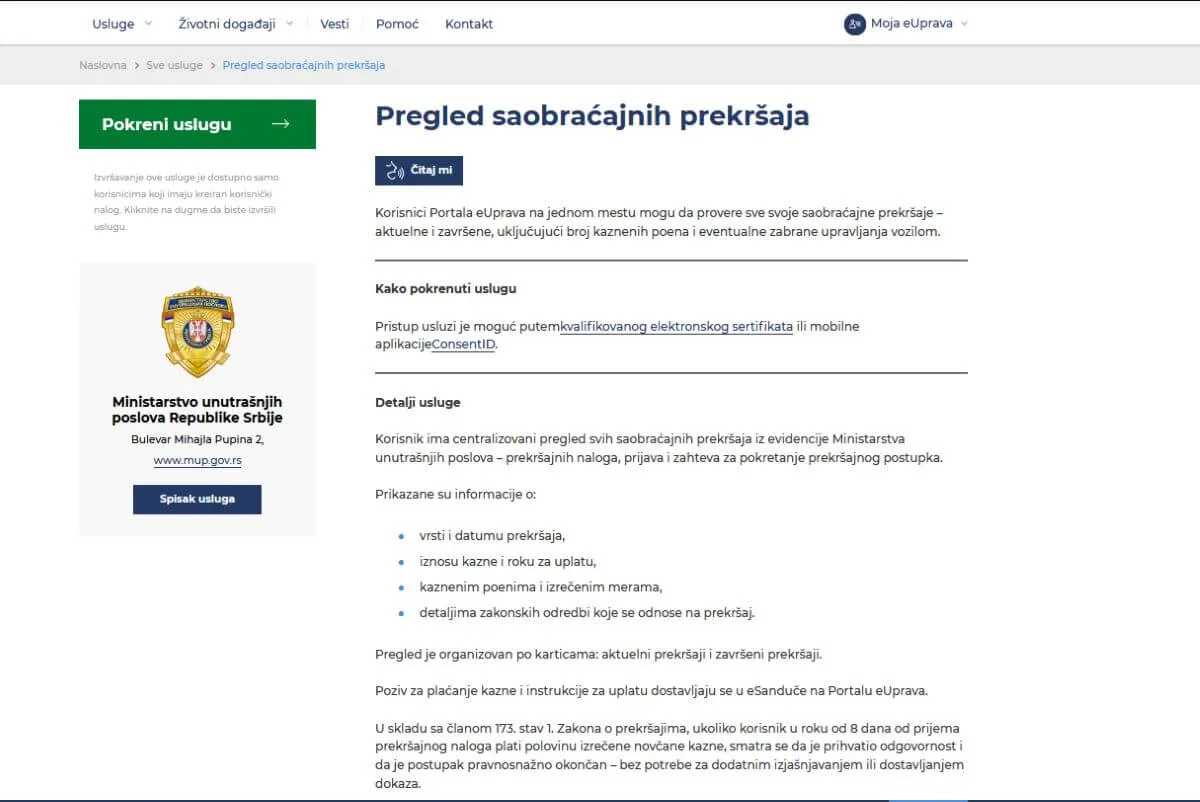Nova usluga Ministarstva unutrašnjih poslova na portalu eUprava znači manje čekanja, manje papirologije i bržu komunikaciju sa Saobraćajnom policijom, jer je sada omogućen online uvid u evidentirane saobraćajne prekršaje i izjašnjavanje vlasnika o tome ko je upravljao vozilom.