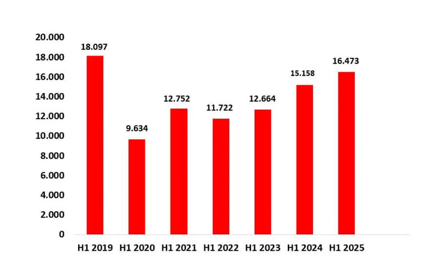 U prvih šest meseci prodato je 16.473 novih putničkih vozila, što je za 1.315 jedinica više nego u istom periodu 2024. (15.158 vozila), odnosno rast od 8,68%. Podsećanja radi, u prvoj polovini 2023. godine prodato je 12.664 putnička vozila, što je označavalo rast u prvom polugodištu 2024. od 19,69%.