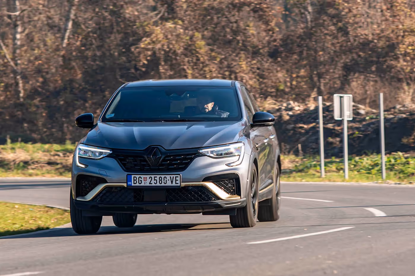 Najupečatljivija karakteristika jeste svakako atraktivan spoljašnji dizajn, nastao ukrštanjem gena SUV-a i kupea. Taj miks sa jedne strane ističe fluidnu bočnu liniju sa spuštenom linijom krova u zadnjem delu i naglašenim ramenim pojasom, a sa druge strane povišenu karoseriju koja je odmaknuta od tla za čitavih 200 milimetara. Njegov kalup se može okarakterisati kao efektan spoj sportske elegancije i robusnosti, a oplemenjen je atraktivnim detaljima kao što su prednji odbojnik sa dodatkom u donjem delu koji podseća na aerodinamička rešenja sa spojlera Formule 1, u kojoj Reno kao marka ima ogromno iskustvo. U specifična obeležja se svrstavaju i „povezane” zadnje svetlosne grupe, baš kao i velika crna slova naziva modela. Testirana verzija ima i oznaku E-Tech Hybrid na petim vratima. Zbog baterije ispod zadnjih sedišta, na raspolaganju je nešto manji prtljažnik u poređenju sa drugim pogonskim verzijama, ali to je i dalje više nego solidan prostor za pakovanje koji zahvata 480 litara, a po potrebi obaranjem naslona zadnjih sedišta dobija se 1263 litra.