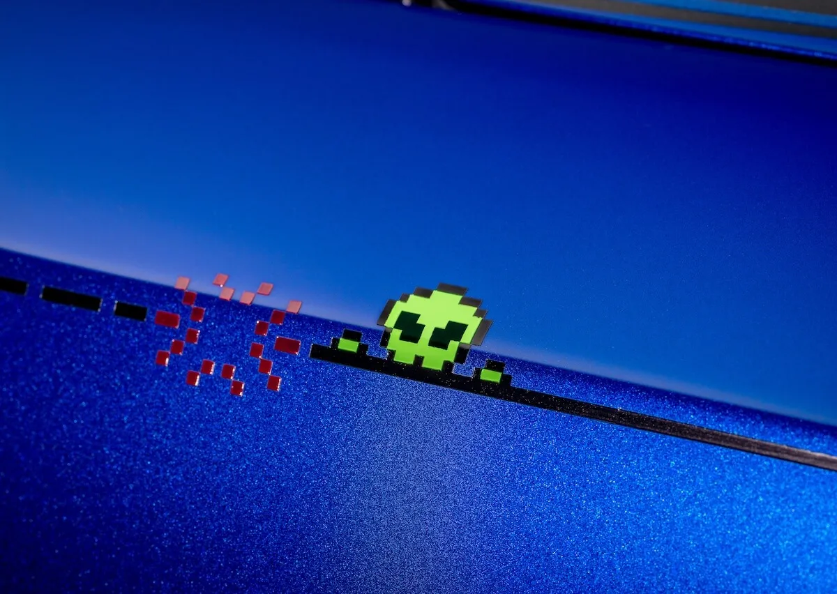 Pre svega, monumentalni Ghost je predstavljen u upečatljivoj Salamanca Blue nijansi plave boje sa elementima Crystal over Diamond Black tona. Elitna limuzina je dekorisana simbolima simpatičnog vanzemaljca, što je samo početak ekstravagantnih prerada. Rolls navodi da je ovaj „gejmerski“ motiv naravno oslikan ručno, čime su kreativci poznatog brenda po ko zna koji put potvrdili najviši nivo veštine, na samoj granici umetnosti.