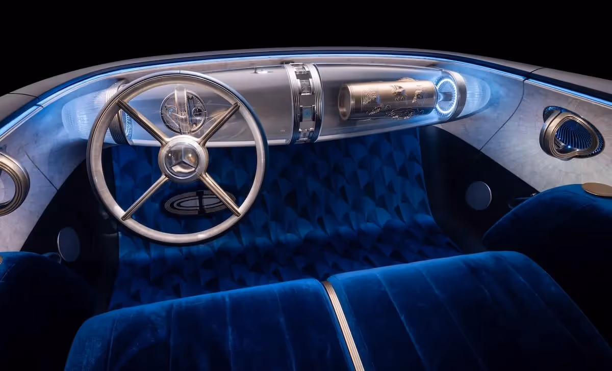 Osim monumentalne pojave i progresivnih sistema, Vision Iconic poglede privlači i zanimljivim rešenjima u kabini budući da unutrašnjost evocira uspomene na legendarni 300 SL. Središnji deo instrument table predstavljen je u znaku plutajuće staklene strukture. U pitanju je takozvani „Zeppelin“ - skulpturalni oblik koji otkriva očaravajuće detalje i interakciju analognih i digitalnih instrumenata.