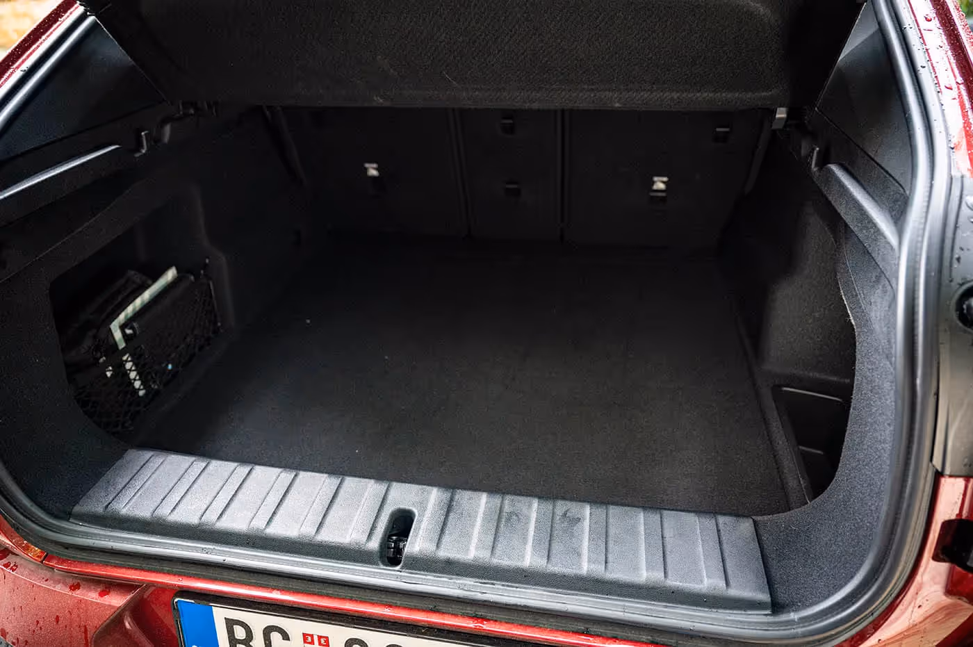 Inače, sportska sedišta zaslužuju posebnu pohvalu – profilisana su tako da drže telo u krivinama, a sa druge strane dovoljno su velika da u njima neće biti tesno ni korpulentnijim osobama. Pozadi je zadnja klupa podeljena u odnosu 40:20:40 i na njoj se mogu smestiti tri osobe. Iako je automobil prilično širok, putniku koji sedi pozadi neće se dopasti masivan središnji tunel u podu automobila, koji oduzima prostor za noge. Srećom po ostale, spuštena linija krova ne utiče u tolikoj meri na komfor – prostora za glave ima u dovoljnoj meri za putnike visoke do 180 cm. Tražiti i očekivati više od toga ne bi ni bilo pošteno prema jednom kompaktnom SUV kupeu. Kada govorimo o prostoru za noge, tu problema nema i automobil je uprkos dužini od „samo” 4,5 metra – izuzetno komotan. Zasluge za to možemo pripisati volumenu kabine, koji je takav kakav jeste ne samo zbog krosover forme karoserije već i zbog poprečno postavljenog motora, koji za razliku od uzdužnog ne „skraćuje” kabinu.