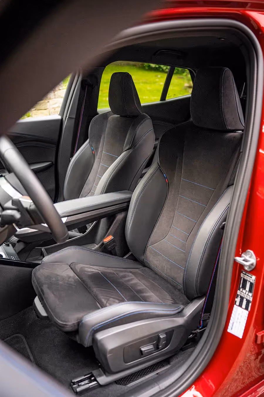 Isto tako kokpit svojim kvalitetom izrade i tehnološkim „akrobacijama” neće ostaviti ravnodušnim one koji se nađu u njemu. Jeftine plastike nema na vidiku, materijali su tako odabrani da preovlađuje kombinacija veganske kože i alkantare, koja se čak našla i na prednjem panelu, uz odlična sportska sedišta i sasvim pristojnu količinu prostora za putnike kreiraju jedan luksuzan ambijent. Naravno, neizostavni su veliki ekrani zajedno sa ambijentalnim osvetljenjem, a tu su i neka druga interesantna rešenja, poput „mosta” koji se od centralnog naslona za ruke prostire prema centralnoj konzoli. Na njemu je smeštena polugica sa funkcijom upravljanja radom novog sedmostepenog automatskog menjača.