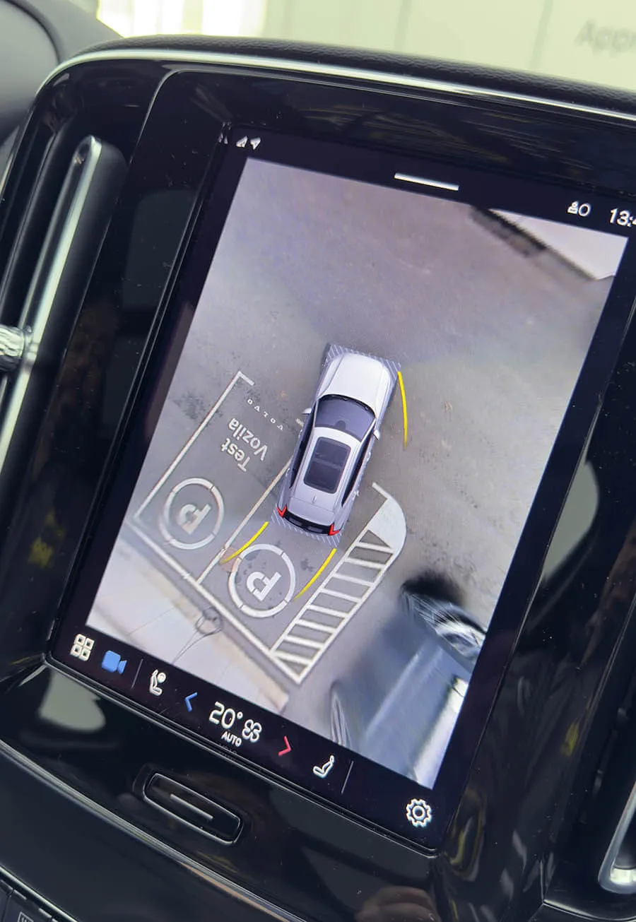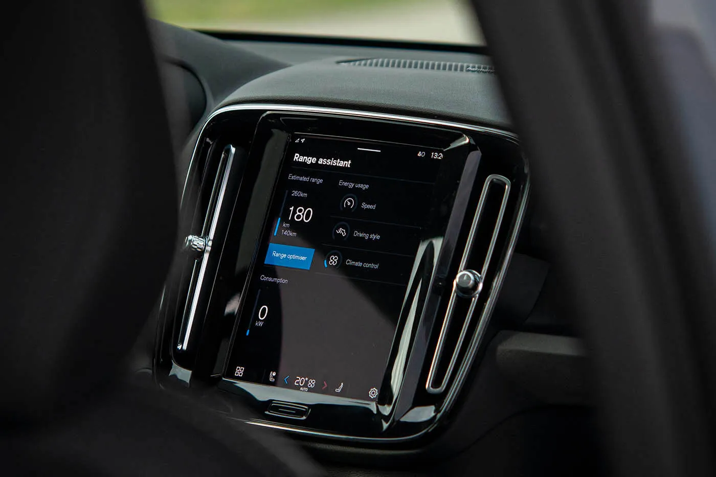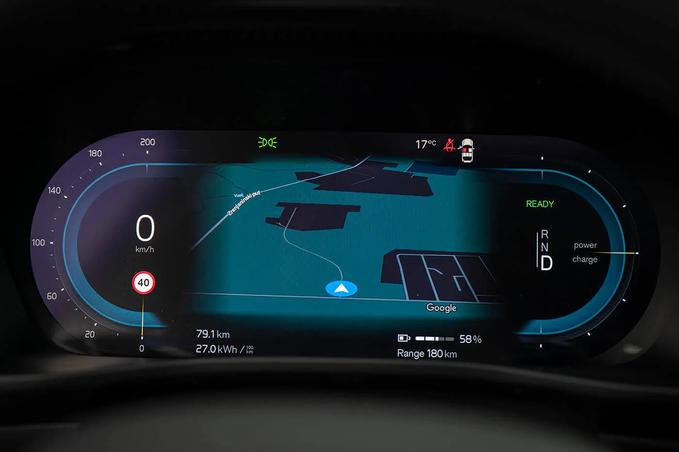 Ambijent u kabini je prilično staložen, kokpit je u tamnim tonovima što daje na otmenosti, ali neki detalji, kao što su „tepisi” na oblogama vrata, mogli bi da zasmetaju kupcima dubljeg džepa koji zahtevaju vrhunski kvalitet u svakom pogledu. Sa druge strane, oni koji preferiraju centralni ekran elegantno integrisan u prednji panel biće veoma zadovoljni rešenjem koje je primenio Volvo. U središtu se nalazi vertiklano postavljen displej veličine 12,3 inča. Osim što omogućuje spektar prikaza, to je komandni centar za navigaciju, multimedijalni sadržaj, povezivanje sa telefonom i Google aplikacijama, a služi i za podešavanje određenih parametara na automobilu.